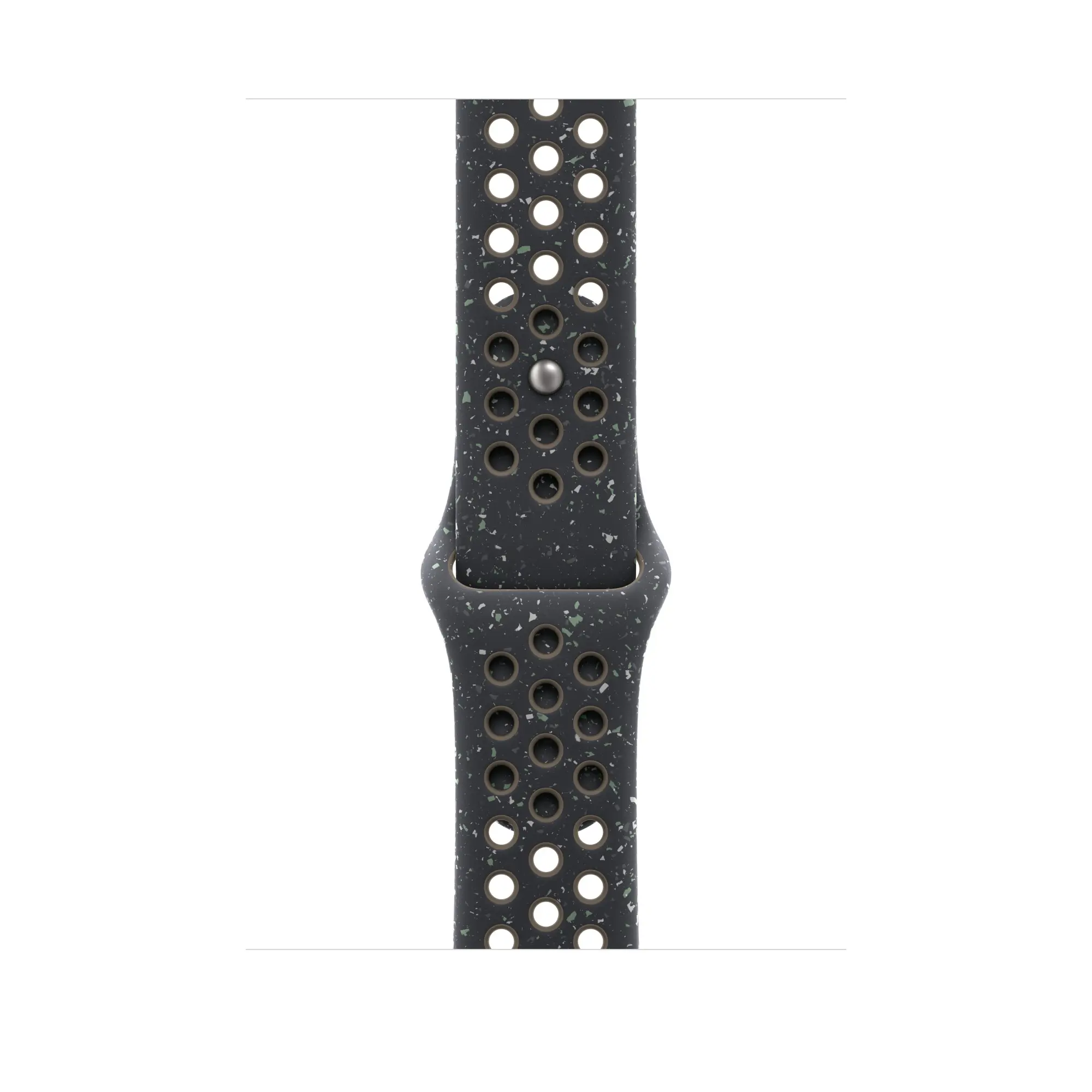 Nike Sport ‑ranneke on kestävä ja vahva, mutta yllättävän pehmeä. Siinä on hengittävä, ahtopuristettu rei'itys. Sen värikkäät hiput luovat satunnaisen kuvion, joiden ansiosta jokainen ranneke on ainutlaatuinen. Sileä ja kiinteä materiaali istuu tyylikkäästi ranteeseesi ja tuntuu mukavalta ihoa vasten. Alumiininen nastakiinnitys antaa soljelle tuoreen mattapinnan. Ranneke sisältää vähintään 30 % kierrätettyä fluoroelastomeeriä ja jokainen hippu vähintään 66 % kierrätettyä fluoroelastomeeriä.