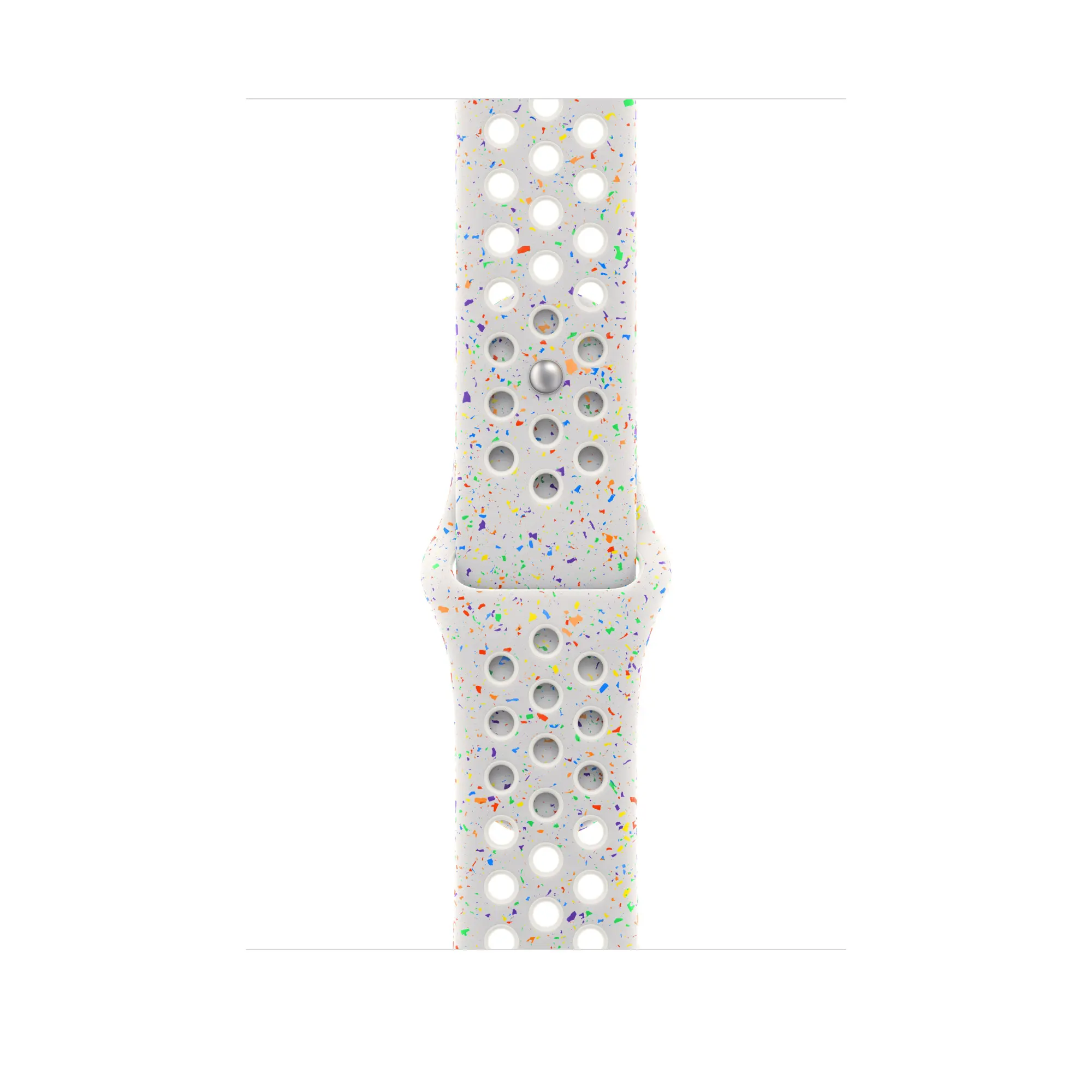 Nike Sport ‑ranneke on kestävä ja vahva, mutta yllättävän pehmeä. Siinä on hengittävä, ahtopuristettu rei'itys. Sen värikkäät hiput luovat satunnaisen kuvion, joiden ansiosta jokainen ranneke on ainutlaatuinen. Sileä ja kiinteä materiaali istuu tyylikkäästi ranteeseesi ja tuntuu mukavalta ihoa vasten. Alumiininen nastakiinnitys antaa soljelle tuoreen mattapinnan. Ranneke sisältää vähintään 30 % kierrätettyä fluoroelastomeeriä ja jokainen hippu vähintään 66 % kierrätettyä fluoroelastomeeriä.