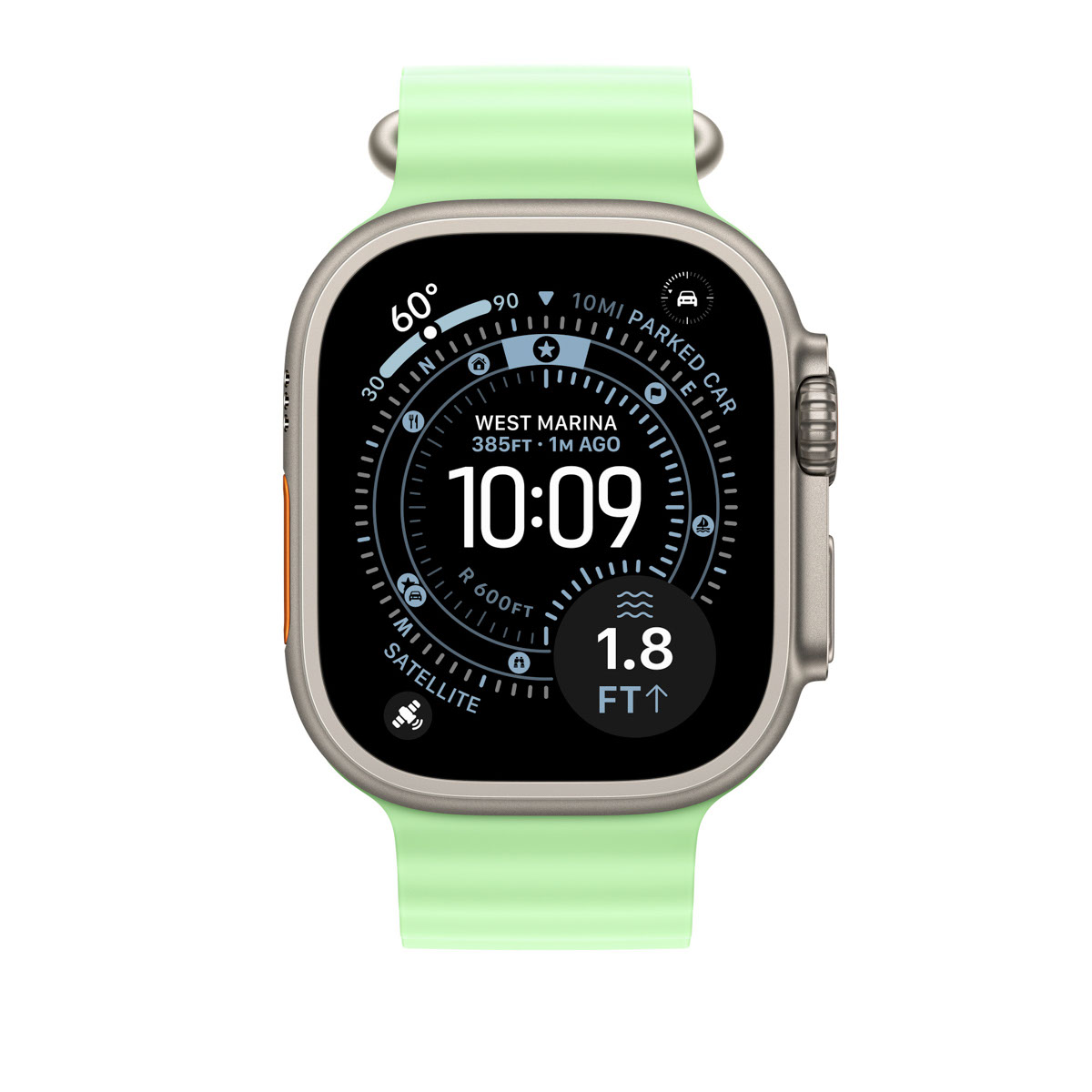 Apple Watch 49mm Ocean Band Neon Green - Natural Titanium