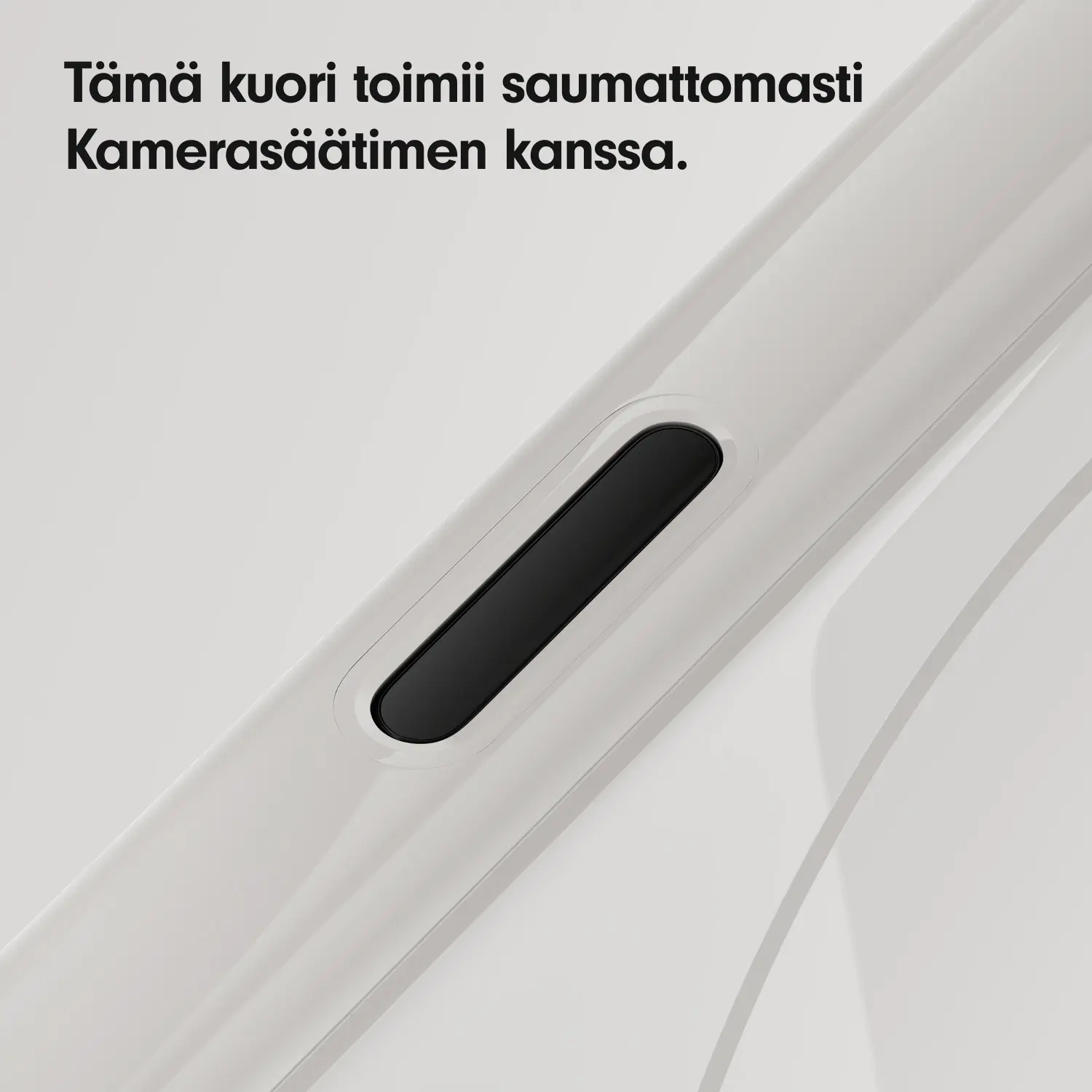 - Tämä kuori toimii saumattomasti Kamerasäätimen kanssa. Siinä on johtavalla kerroksella varustettu safiirilasipinnoite, joka välittää sormesi liikkeet Kamerasäätimeen.