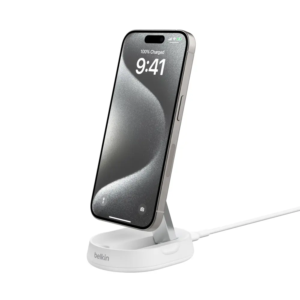 Lataa iPhone tai Qi2-yhteensopiva laite kätevästi nopeasti ja nauti langattoman latauksen tuomasta vapaudesta. Taitettava muotoilu tekee vaihtamisesta alusta- ja telinetilojen välillä helppoa, ja voit katsella puhelintasi latauksen aikana.