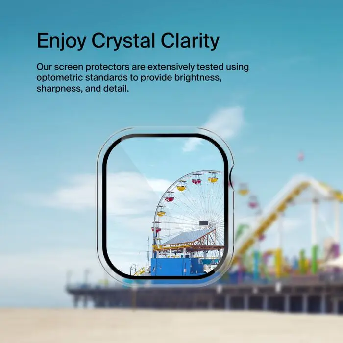 Get better coverage and 360˚ surround protection for your Apple Watch with this hybrid screen protector and bumper. Engineered from premium glass, the curved surface offers an original-screen feel while safeguarding your device from bumps, scratches, and other wear and tear.