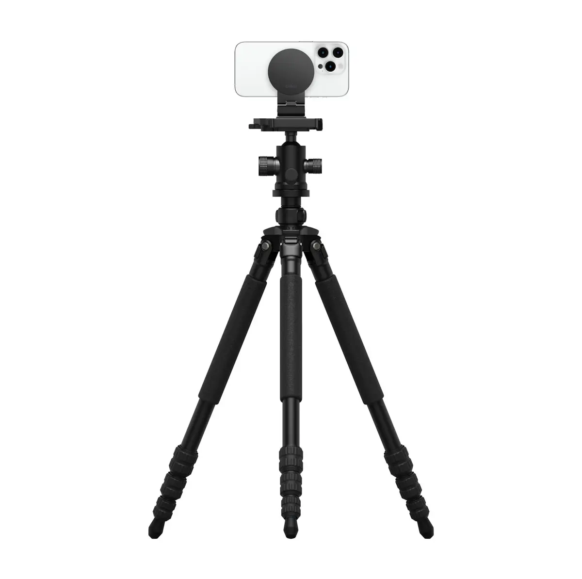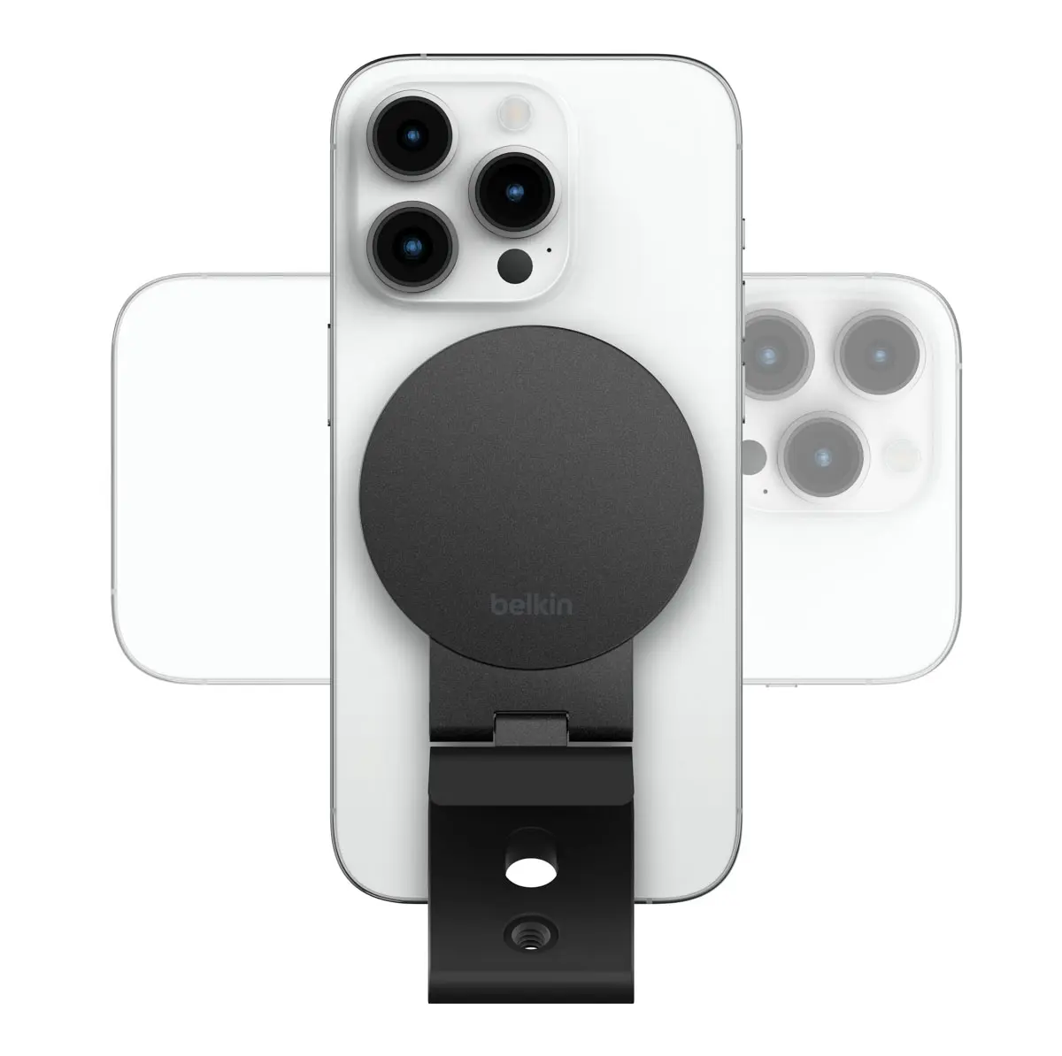 Magneettisen kiinnityksen ansiosta voit kiinnittää MagSafe-yhteensopivan iPhonesi Mac-tietokoneeseen tai -näyttöön ja käyttää tehokasta takakameraa verkkokamerana Käännä iPhone vaivatta pysty- tai vaakasuuntaan ja kuvaa videota sujuvasti kädet vapaina. MagSafe-yhteensopivan iPhone-telinen ansiosta iPhone 12 ja uudemmat mallit pysyvät tukevasti molemmissa asennoissa. Kestävä alumiini- ja sinkkikiinnike tarjoaa säädettävät katselukulmat pystysuorasta 25 astetta alaspäin. IPhone-teline on yhteensopiva tavallisen kolmijalan 1/4"-ruuvin kanssa, mikä tarjoaa kätevän tuen sisällöntuottajille.