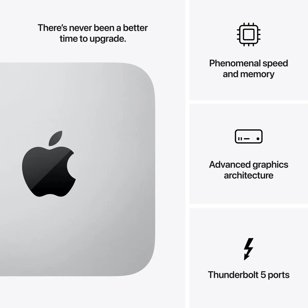 - JUURI SOPIVA TYÖPÖYDÄLLESI – Mac Studion kompakti neliönmuotoinen 7,7 tuuman runko mahtuu useimpien näyttöjen alle.