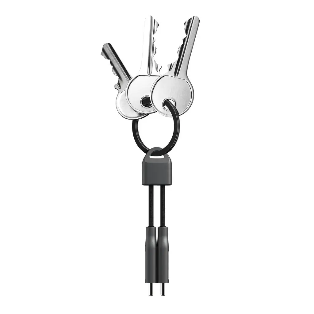 ChargeKey on modernin nomadin täydellinen latausratkaisu. Tyylikäs ja minimalistinen ChargeKey kulkee huomaamattomasti avainnipussa ja tukee monenlaisia latausratkaisuja liikkeellä ollessasi. Kestävä punottu kaapeli ja sähköpinnoitetut sinkkiliittimet kiinnittyvät magneettisesti, tehden käytöstä kätevää ja luotettavaa.
