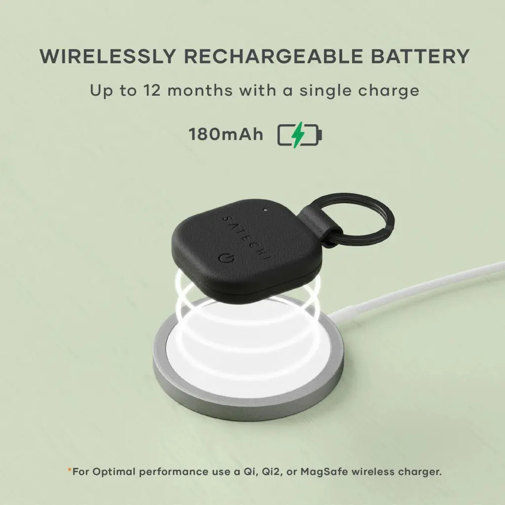 Pysy virtaa saava ilman kaapelien vaivaa. Satechi FindAll ™ -laitteessa on kätevä langaton lataustekniikka, joka varmistaa, että seurantalaitteesi on aina valmiina, kun tarvitset sitä. Aseta se vain mille tahansa Qi-yhteensopivalle latausalustalle nopeaa virranlisäystä varten. Pitkäkestoinen akku tarjoaa pidennetyn suorituskyvyn, vähentää lataustiheyttä ja pitää sinut yhteydessä arvoesineisiisi pidempään.