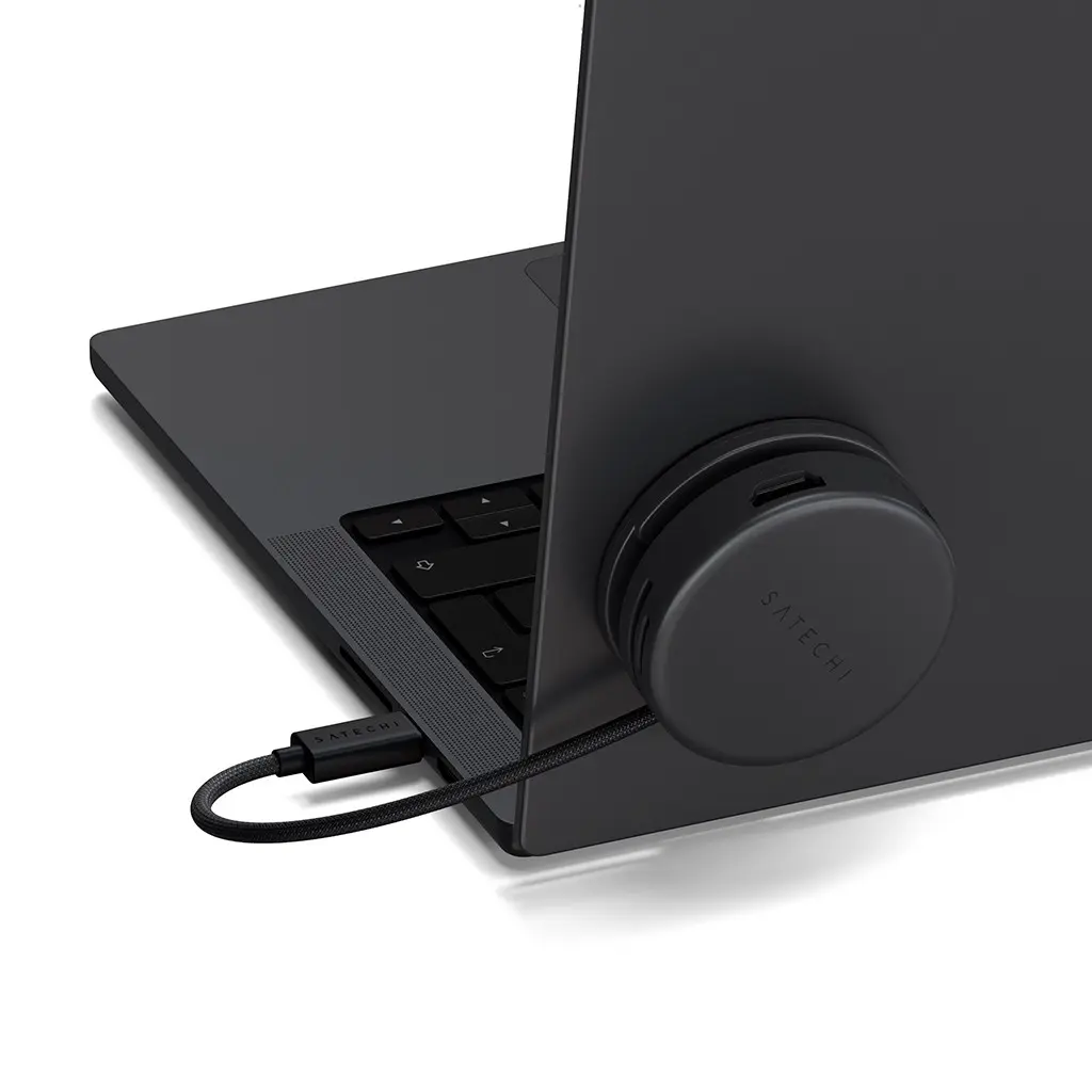 Satechi OntheGo™ 7-in-1 -moniporttisovittimen avulla voit tehostaa työnkulkuasi missä tahansa. Tämä tyylikäs, matkakäyttöön soveltuva keskittin tarjoaa modernien USB-C-laitteiden tarvitsemat olennaiset portit, ja siinä yhdistyvät kompakti muotoilu, magneettinen mukavuus ja tehokas liitettävyys, jotta olet nopea, organisoitu ja valmis kaikkeen.
