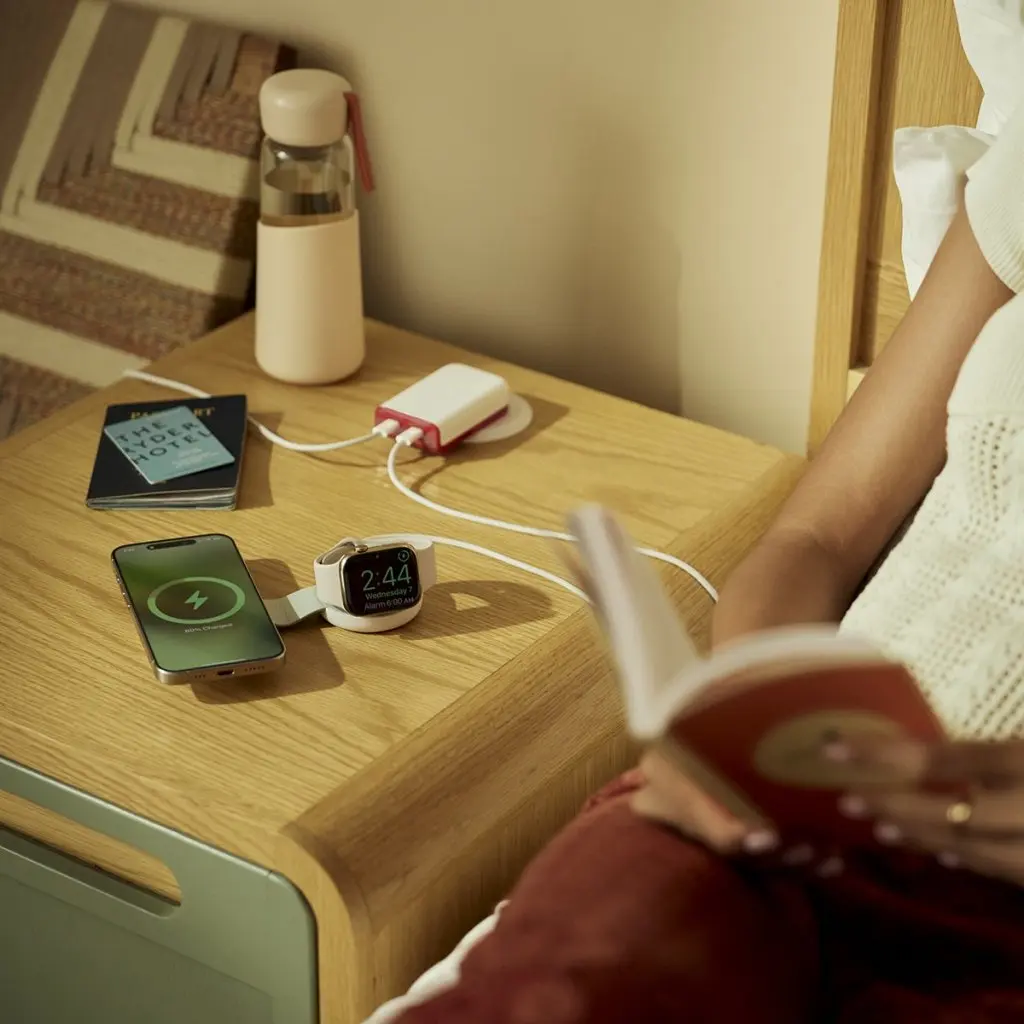 Latausominaisuuksiensa lisäksi ButterFly SE muuntuu handsfree-katselutelineeksi iPhonelle ja Apple Watchille. Suoratoistatpa sitten ohjelmia, käytät FaceTimingiä tai StandBy-tilaa, ButterFly SE tarjoaa kätevän ja joustavan asennuksen. Magneettinen Apple Watch -latauslaite jopa kallistuu ylöspäin, jolloin saat käyttöön Nightstand Mode -tilan.