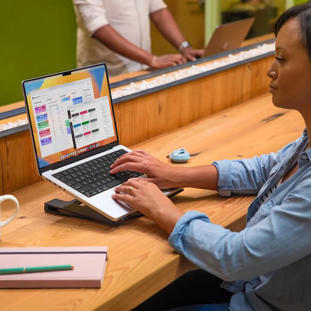 Curve Flex on enemmän kuin pelkkä jalusta - se on matkakumppani. Se on suunniteltu taittumaan litteäksi, joten se kulkee kätevästi mukana missä tahansa MacBookisi kulkee, ja tarjoaa mukavuutta ja mukavuutta missä tahansa.