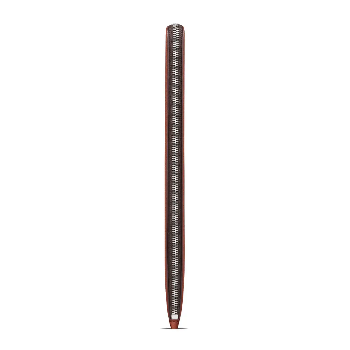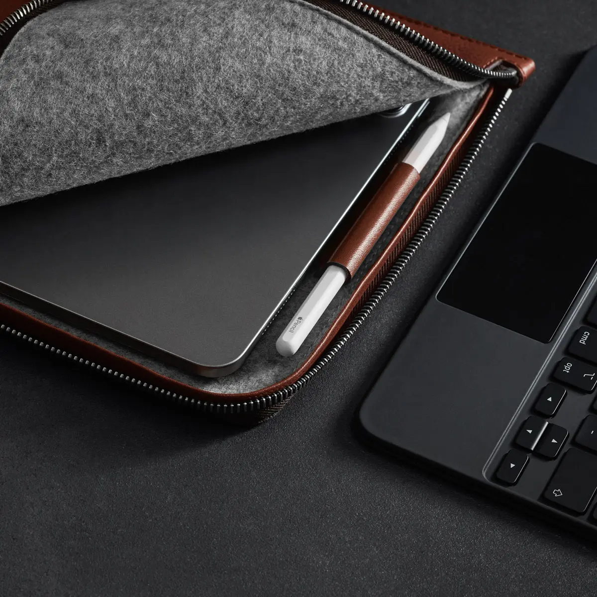 Tämä ohut nahkainen kansio on suunniteltu mittatilaustyönä, jotta se sopii täydellisesti iPadillesi ja sen tarvikkeille. Kansion sisällä on lisätilaa sekä Magic Keyboardille että Apple Pencilille, jonka voi kiinnittää omalle kynätelineelleen tai ladata iPadin kanssa. Ruotsalainen minimalistinen muotoilu pitää kokonaispaksuuden minimissä. Kansion ulkopinta on valmistettu omaleimaisesta skandinaavisesta full-grain-nahasta ja sisäpuoli on vuorattu 100 % luonnollisella villahuovalla. Kansion vetoketjuna on YKK:n Japanissa valmistama EXCELLA, yksi maailman hienoimmista metallivetoketjuista.